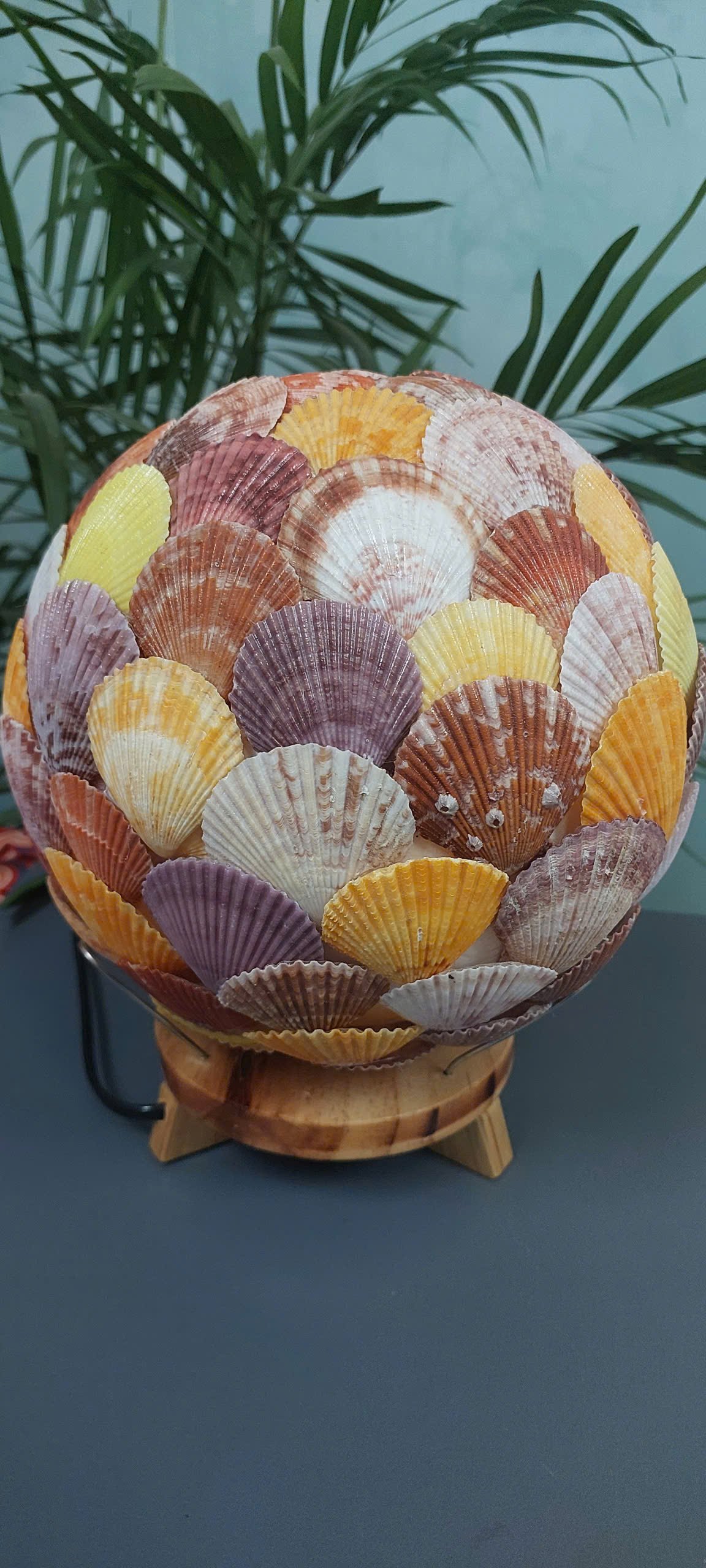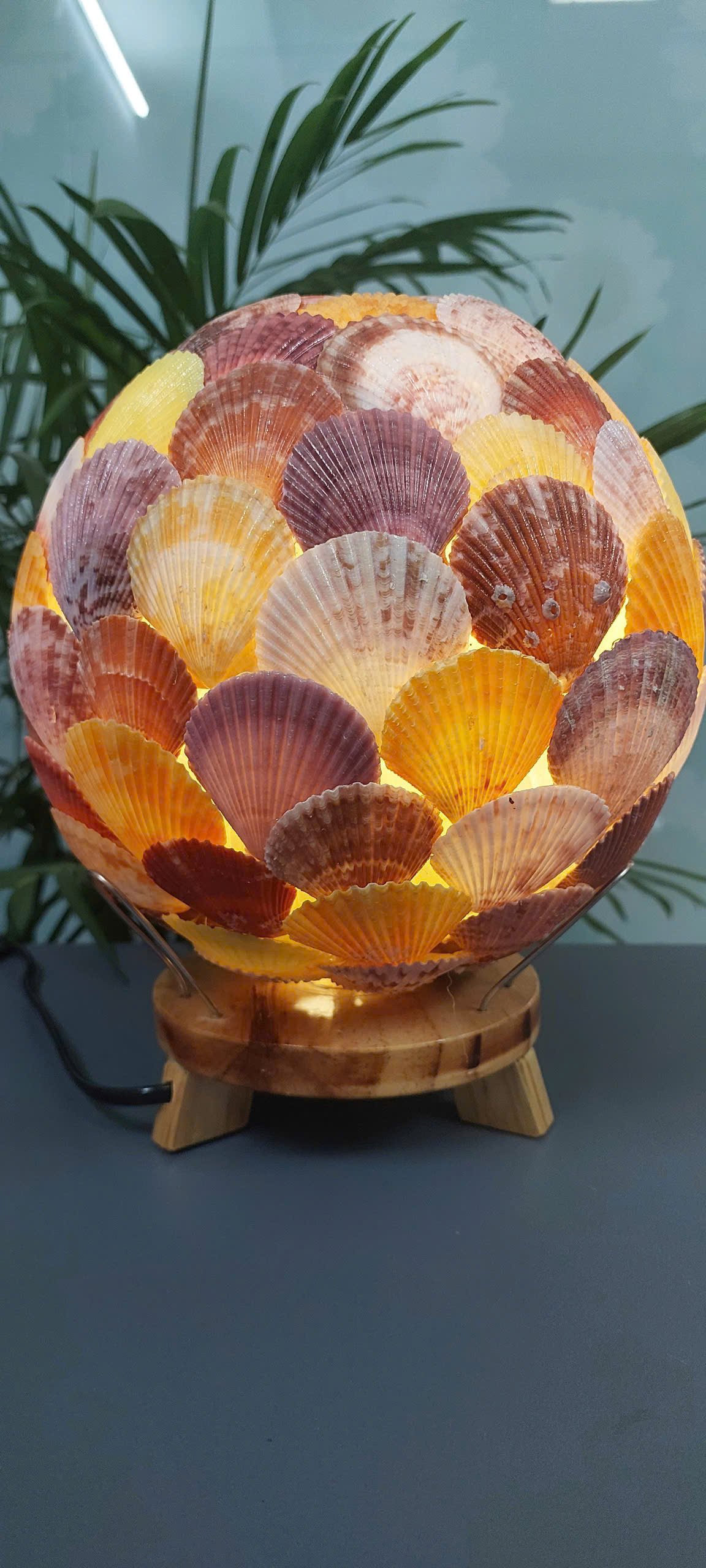 | Vật liệu: | Vỏ sò điệp, đèn led dạng hình cầu, đế gỗ |